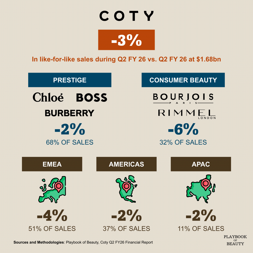 Coty reported Q2 FY26 net revenues of $1,68bn, a modest 1% increase on a reported basis but on a like-for-like basis revenue declined by 3%.