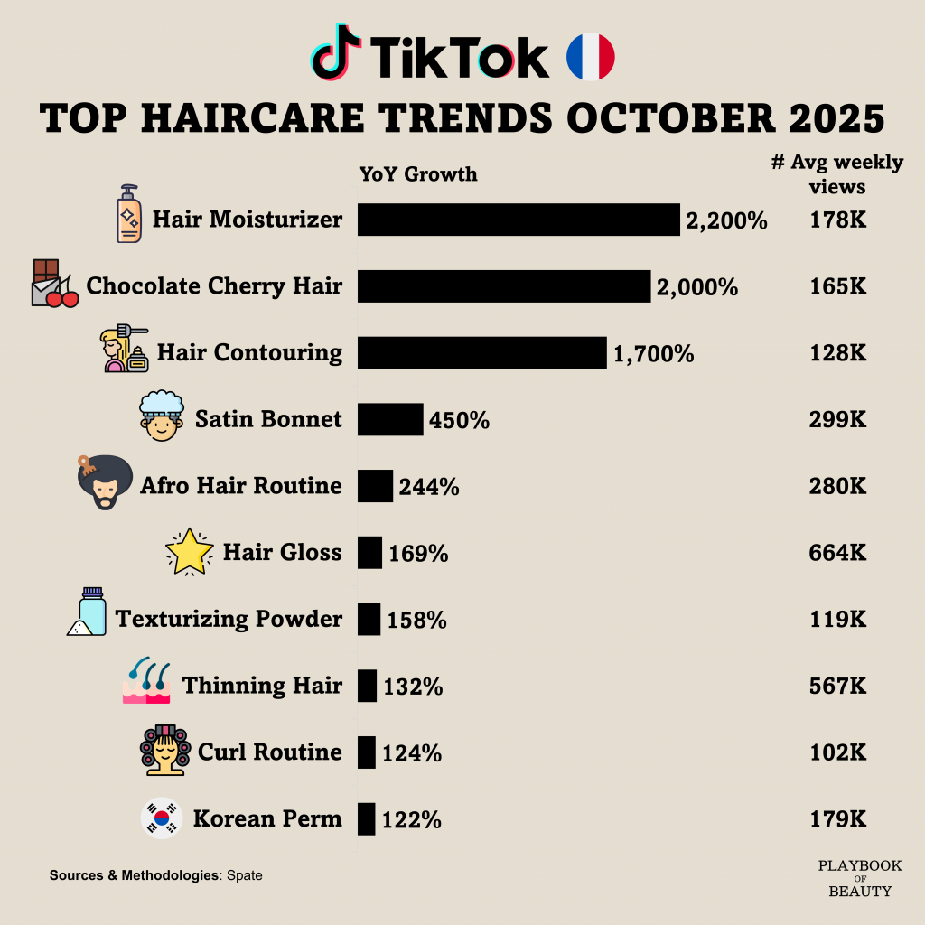 October 2025 TikTok engagement data from Spate reveals a significant evolution in French consumer behavior within the haircare category.