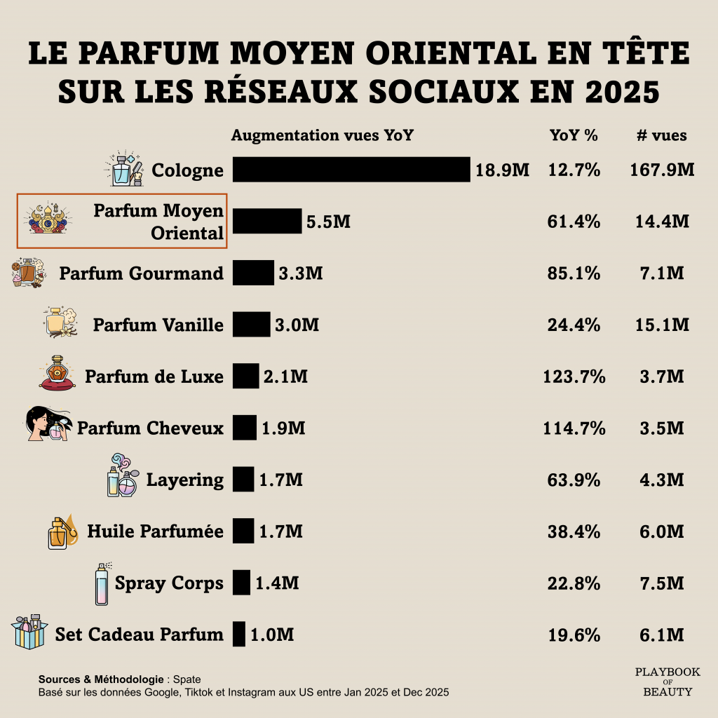 The second biggest fragrance trend on social media in 2025, with viewership up more than 60%, Middle Eastern perfumes are experiencing remarkable international growth.