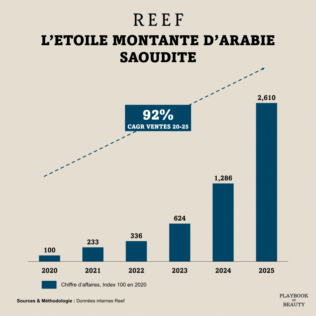 What lies ahead for 2026? The enthusiasm for these fragrances shows no signs of slowing. However, the conflict in Iran is currently impacting the UAE’s logistical capabilities more than those of Saudi Arabia. This context could allow Saudi brands to gain an edge and accelerate their international expansion. This is particularly true for Reef (REEF GROUP | مجموعة ريف), a Saudi brand founded in 2018, which has nearly doubled its revenue every year between 2020 and 2025, growing from 12 owned stores in 2020 to over 400 today, becoming one of the leading perfume brands in the Gulf countries.