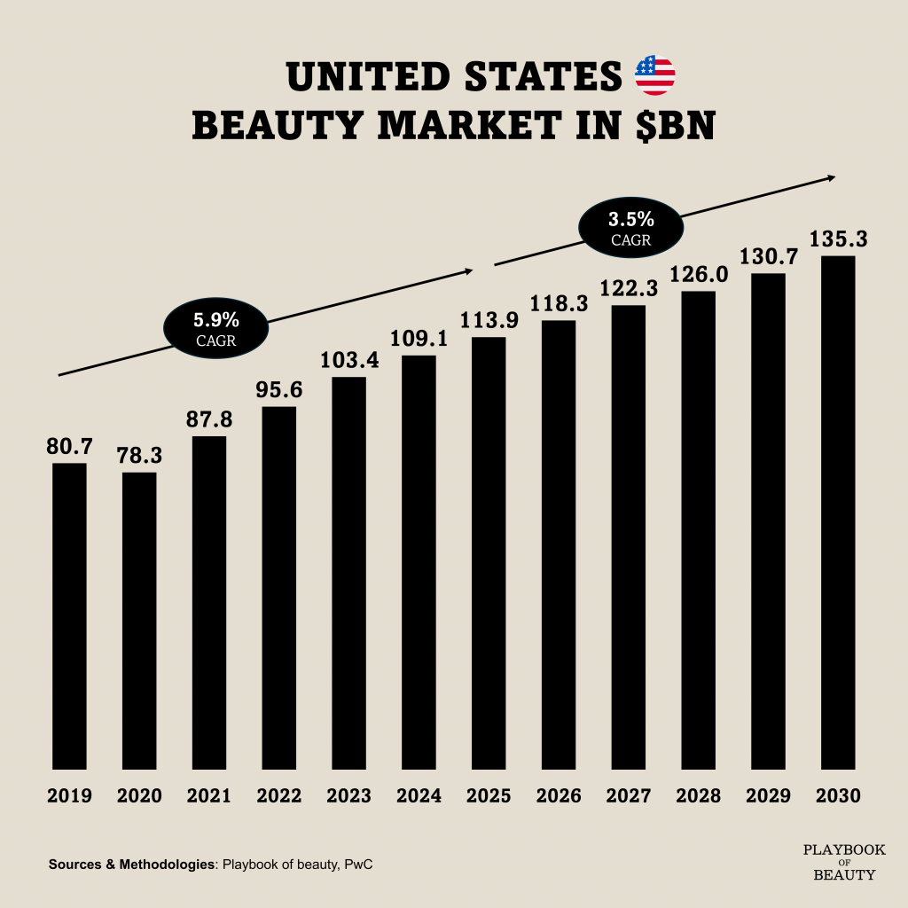 The US beauty market remains the world’s largest, with a projected value of $111.3 billion by 2025. This represents a robust 5.9% CAGR from 2019, outpacing global market growth of 5.3% for the same period. While growth is forecast to slow relative to high-growth regions like India and Southeast Asia post-2025, the market’s strategic importance is only intensifying.